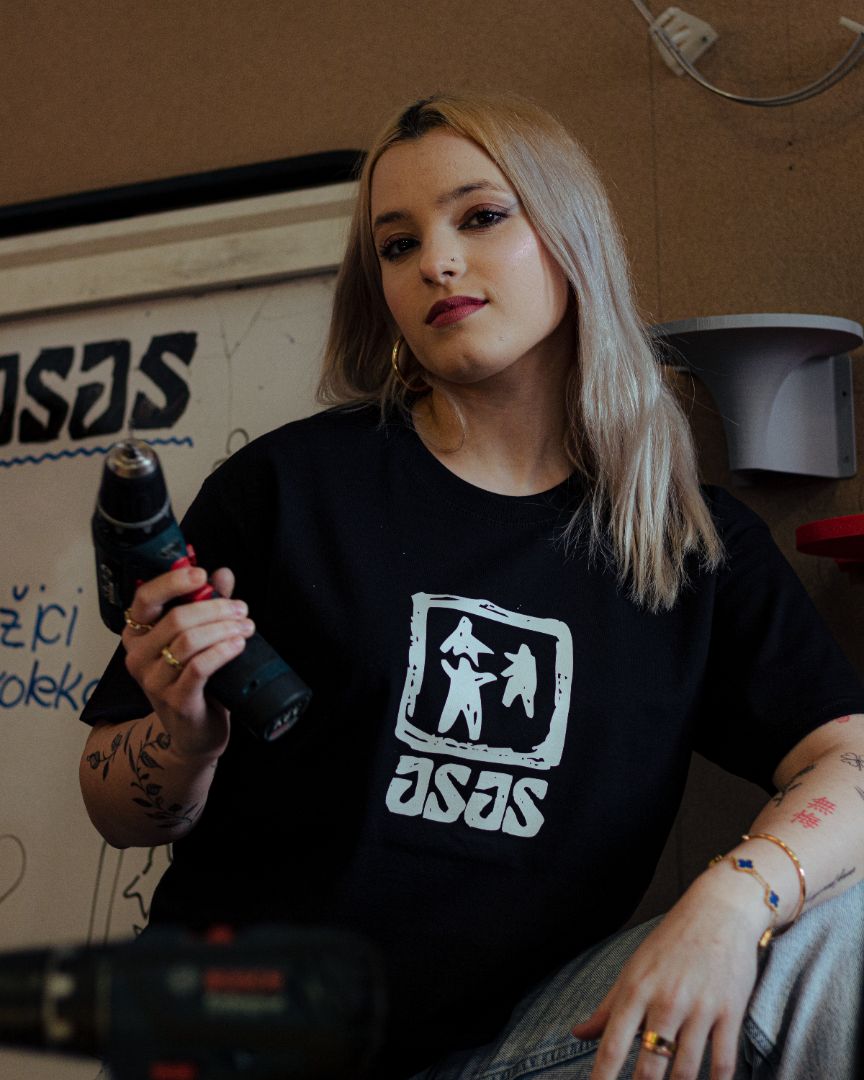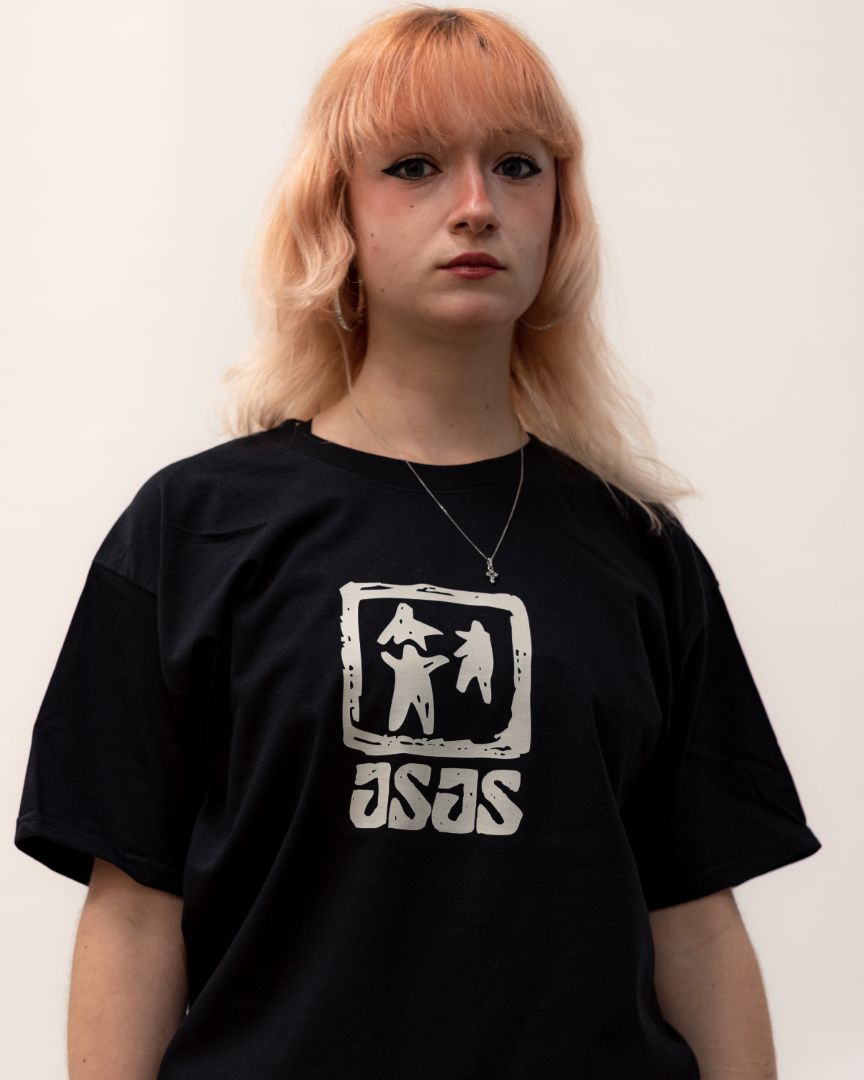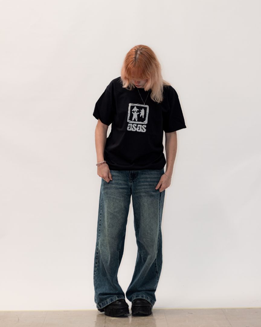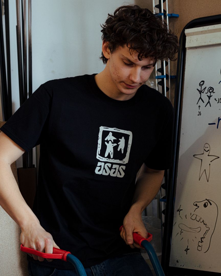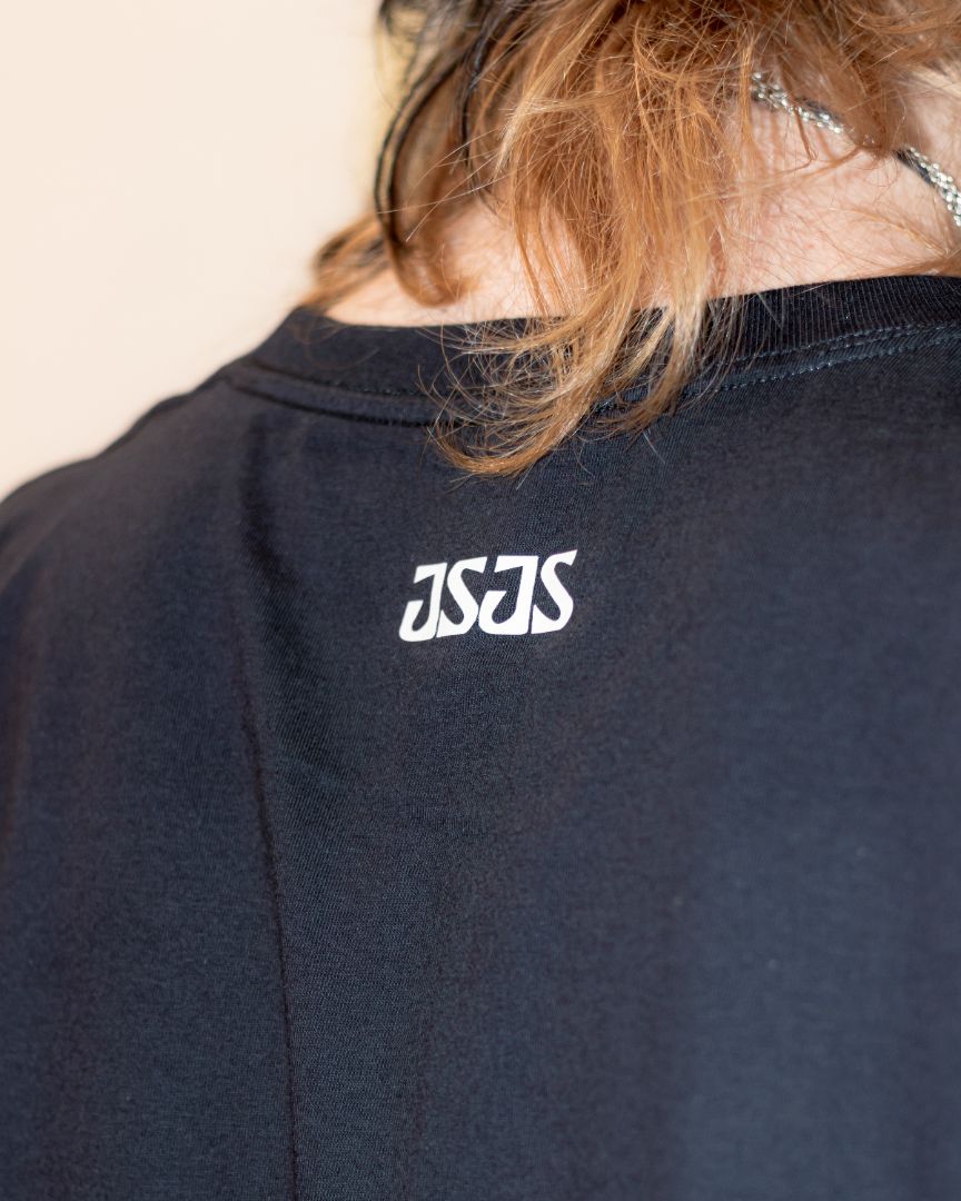 Črna 100 % bombažna kratka majica z izvirnim JSJS motivom. Potisnjena s sitotiskom.