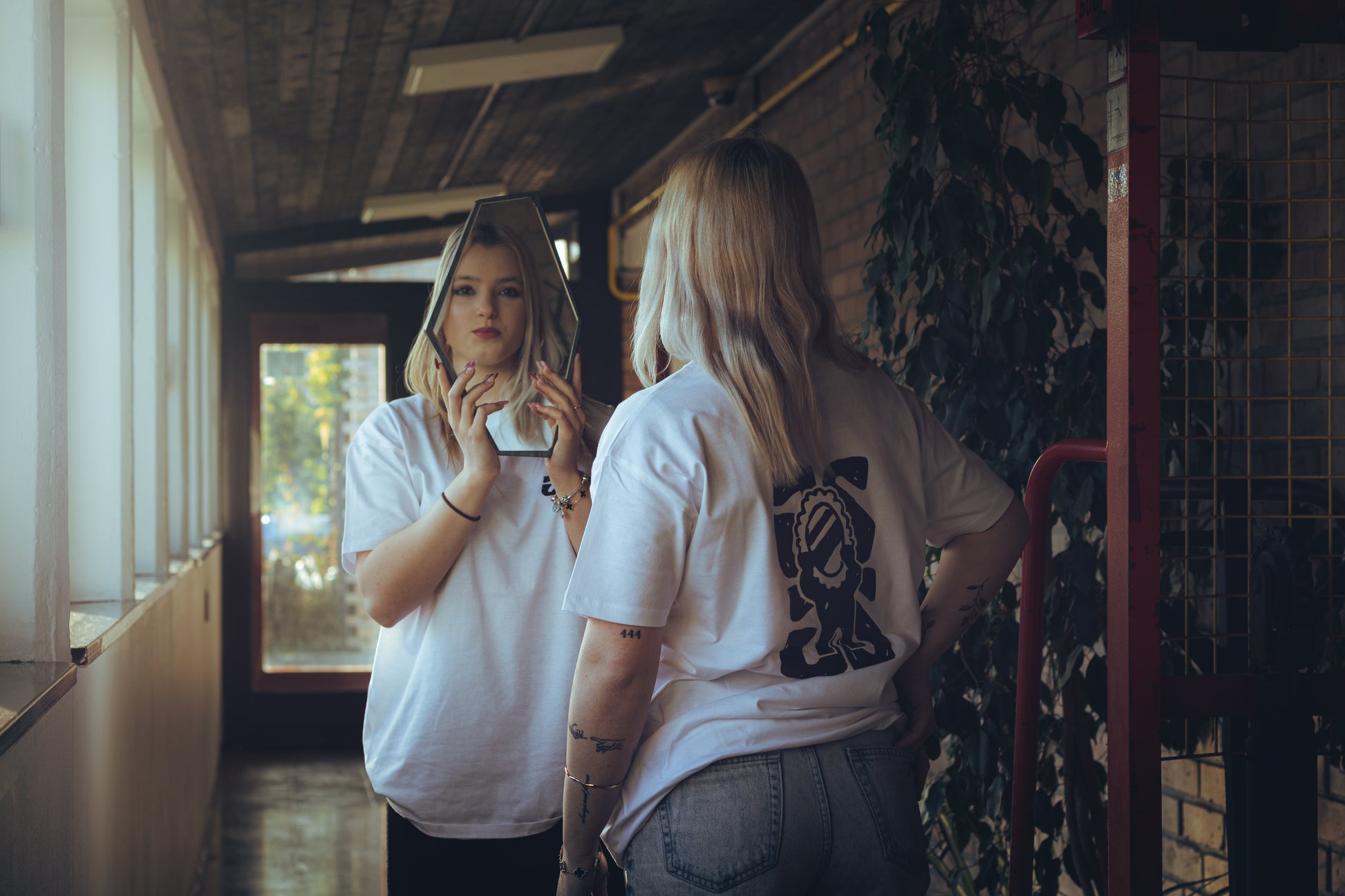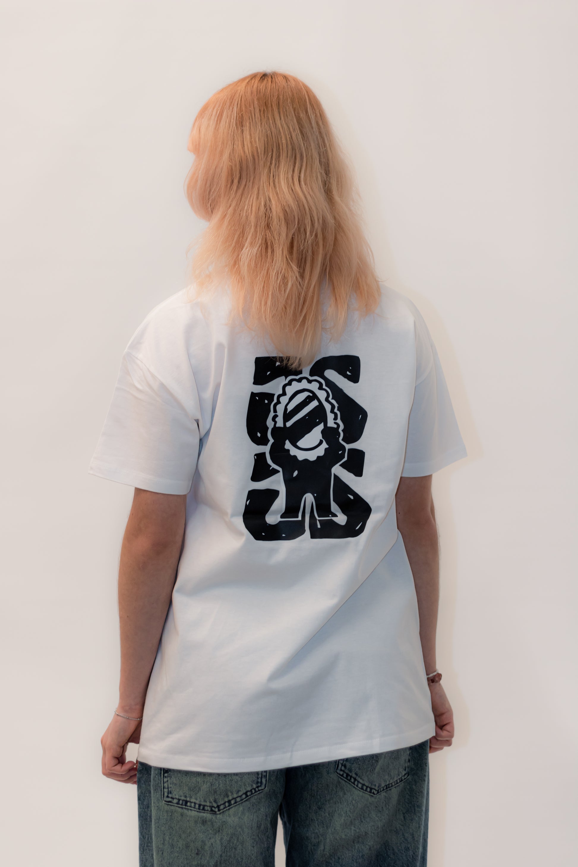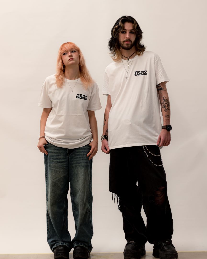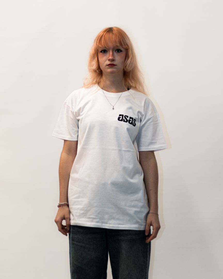 Bela, 100 % bombažna urbana majica, potiskana s sitotiskom.